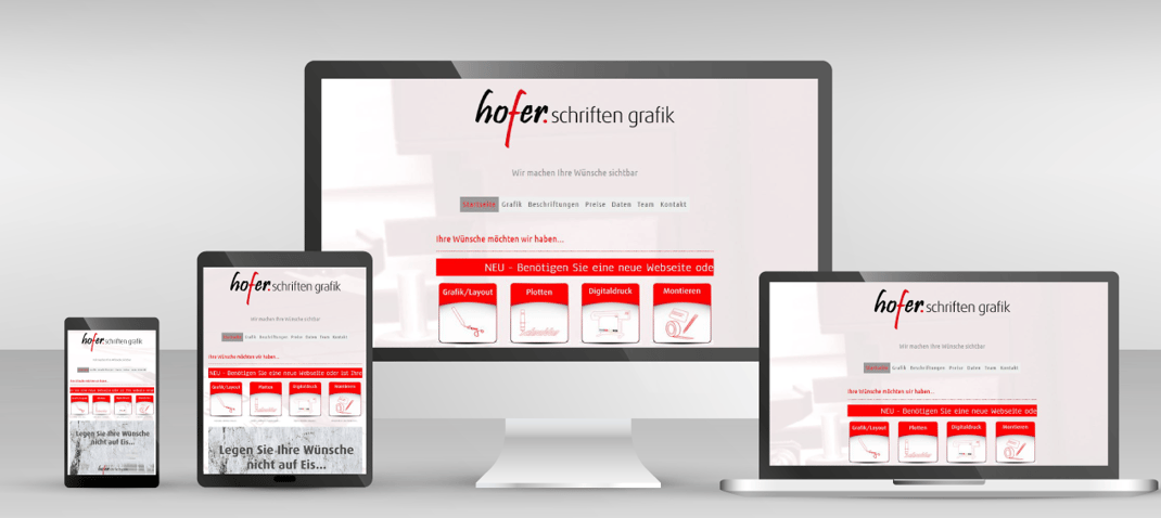 Ist Ihre Website veraltet? Das Zauberwort heisst "Responsive" - Einfach erklärt; Ihre Website passt sich auf allen Endgeräten optimal an: Desktop-Computer, Smartphones und Tablets. Wir arbeiten mit einem einfachen Baukastensystem von Jimdo, welches uns ermöglicht, gemäss Ihren Vorstellungen eine Webseite zu erstellen, welche zu Ihnen passt und dies auf höchstem technologischen Niveau.